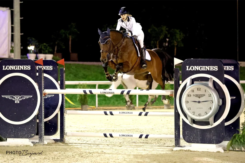 C’est un grand cheval fort et précieux, courageux en piste, et qui cherche toujours à bien faire. Il a la puissance et la qualité nécessaire pour performer en 150.